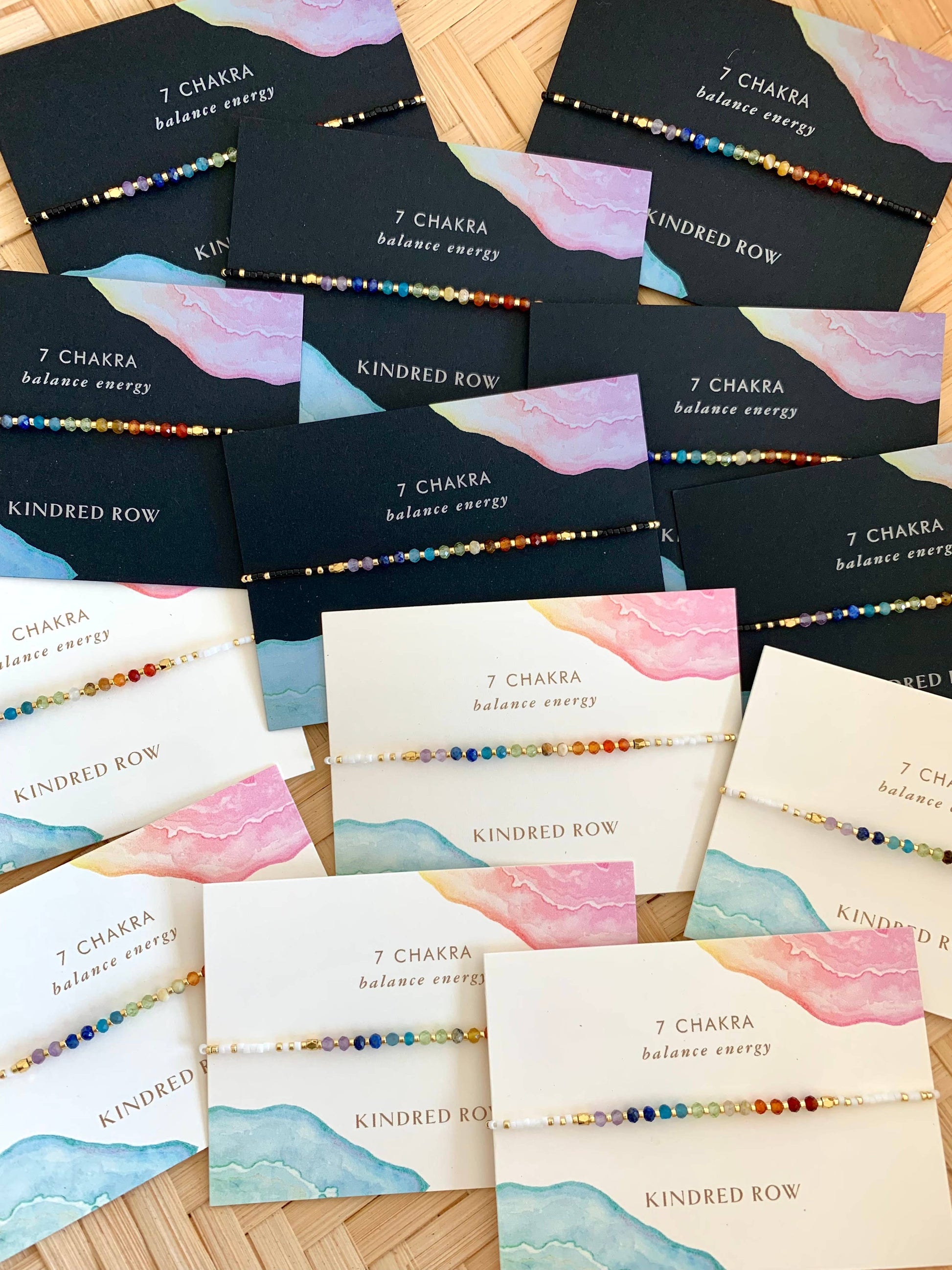 Chakra Rainbow Healing Gemstone Stacking Bracelet, Black