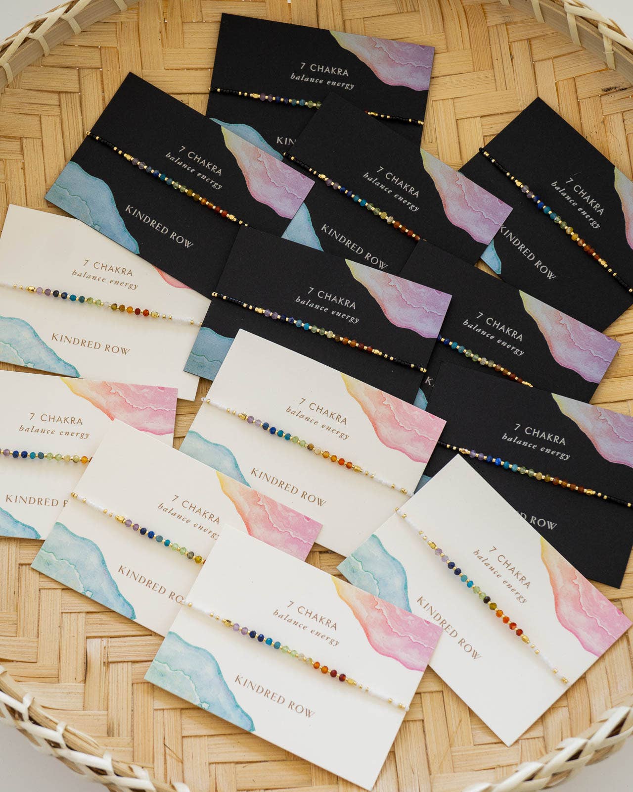 Chakra Rainbow Healing Gemstone Stacking Bracelet, White