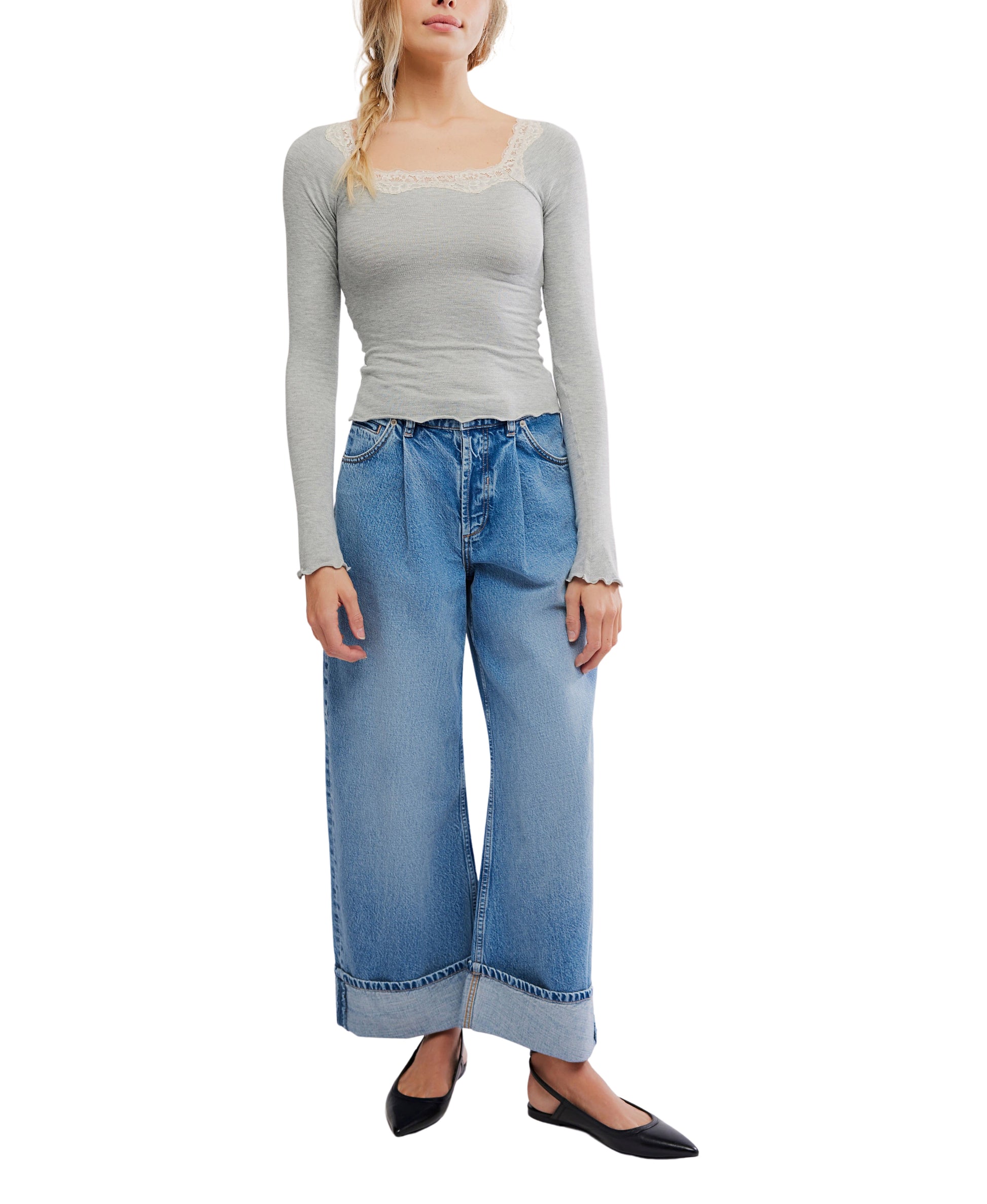 Long sleeve shirt with lace trim