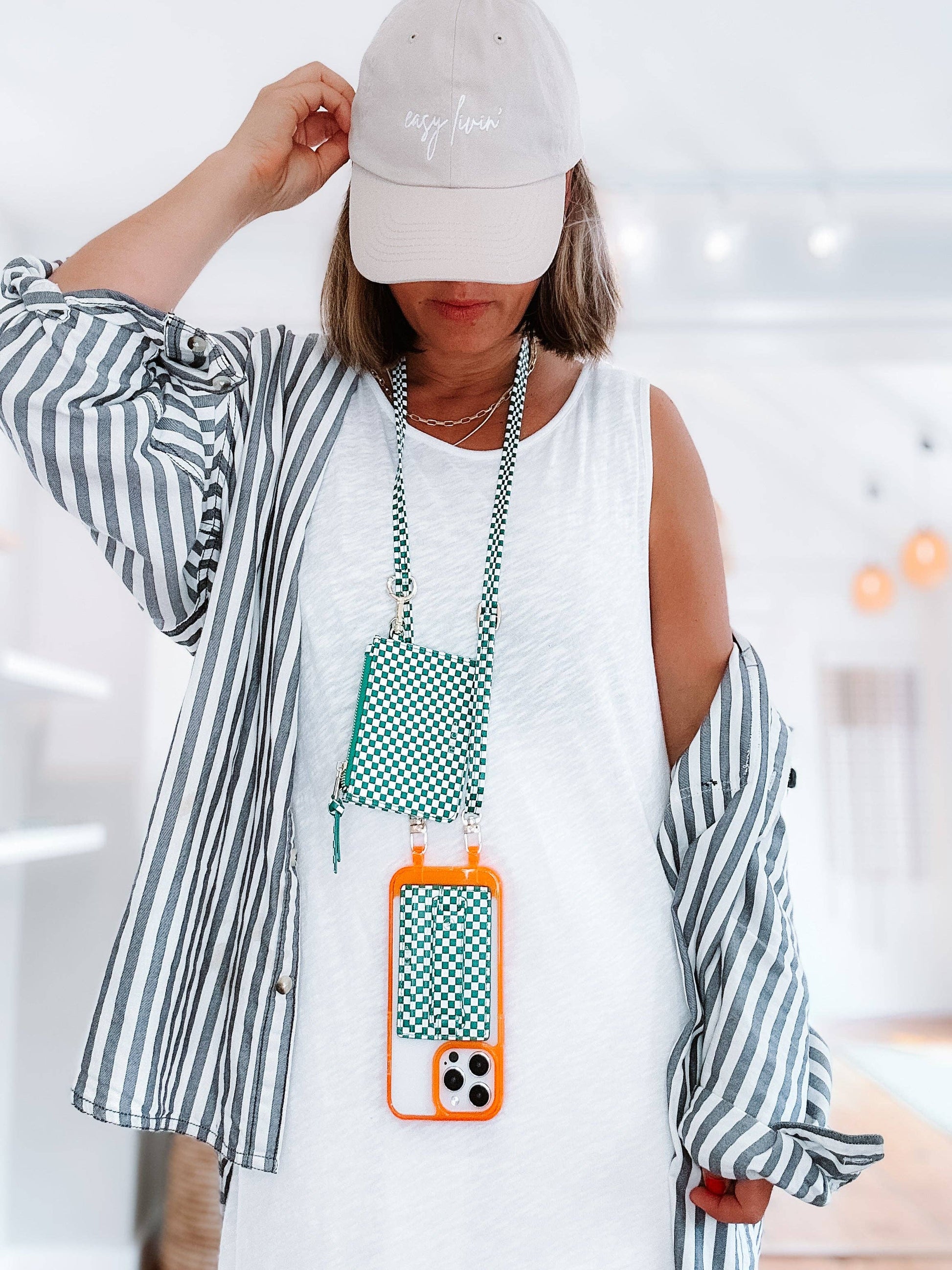 Single Green Checkered Phone Strap: Wristlet (14.5 inches)